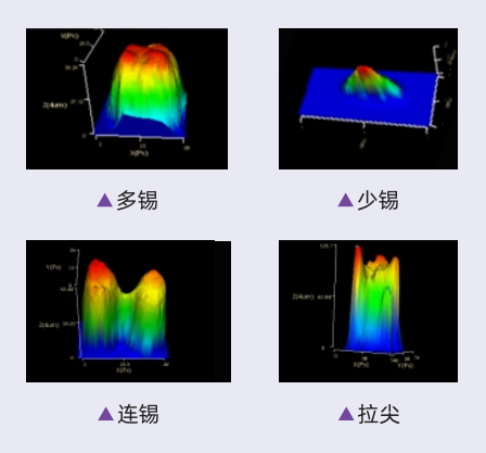 ● 能有效檢出如錫絲短路、斷錫和拉尖等行業(yè)難檢的不良