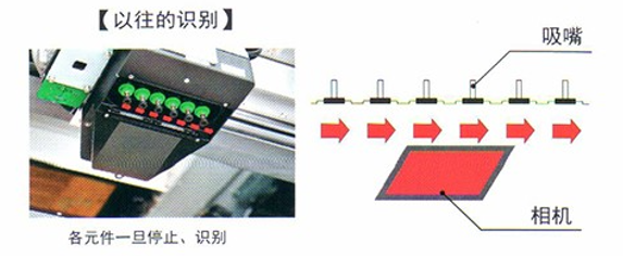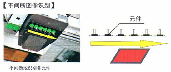 通過相機(jī)實(shí)現(xiàn)了高速無停頓圖像識(shí)別,對(duì)吸取的各個(gè)元件連續(xù)拍攝,實(shí)現(xiàn)了高速圖像識(shí)別。