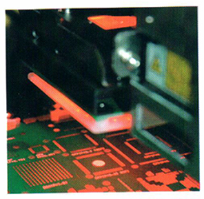 貼裝頭上安裝了激光傳感器,從供料器吸取元件到 貼裝位置可 還可以對(duì)C S P ? 0 . 2 mm的引腳芯片